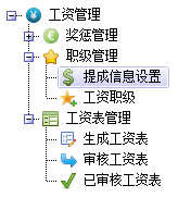 工資模塊的操作可分為六個步驟:分別是 提成信息設置—工資職級設置—員工職級設置—生成工資表—審核工資表—已審核工資表