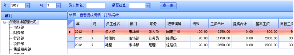 已審核工資表的界面如圖所示,用權(quán)限的用戶可以在這里進行工資結(jié)算。