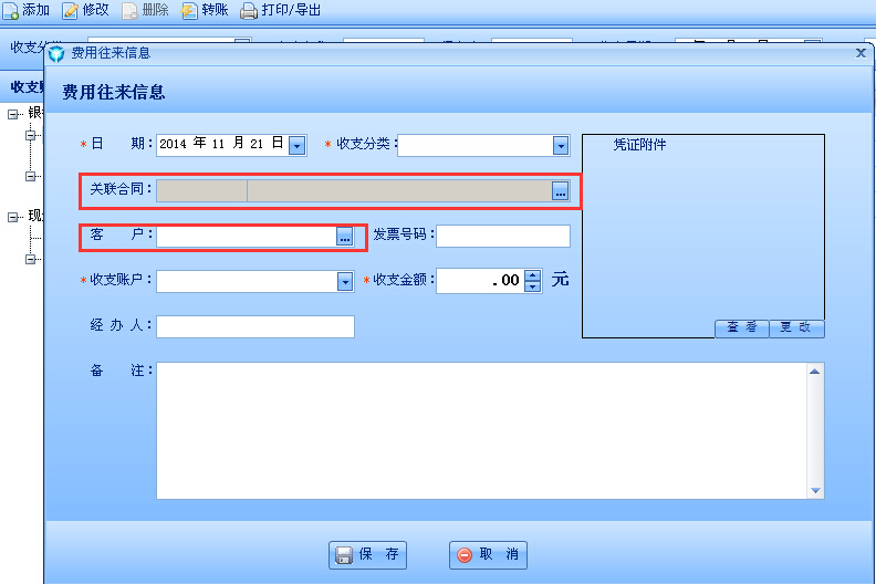 記錄往來明細“關聯(lián)合同”可關聯(lián)可不關聯(lián):