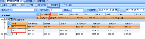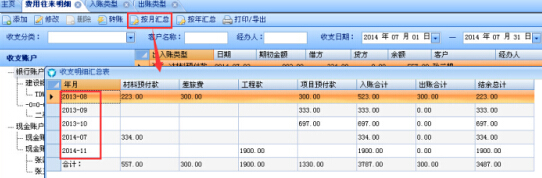 費用往來明細增加收支明細匯總功能:按月匯總、按年匯總;
