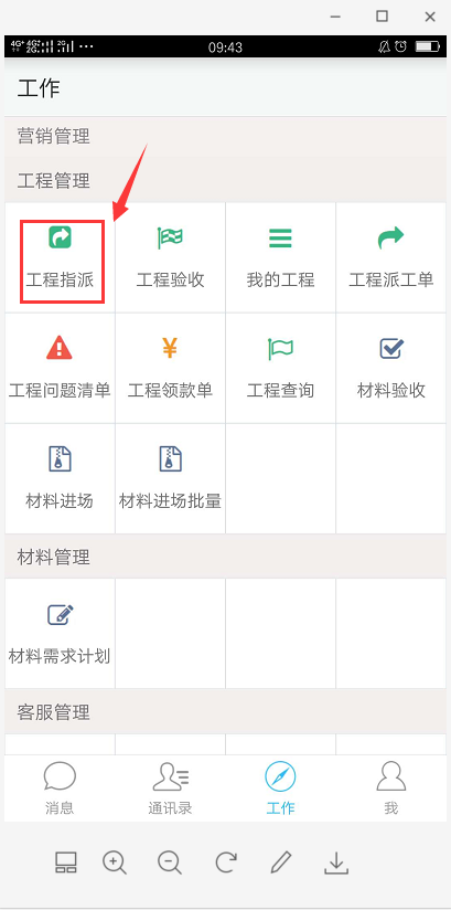 依次點擊:工程指派--選中工程--(可提前篩選工程的指派狀態)--選擇相關的工作人員--完成指派