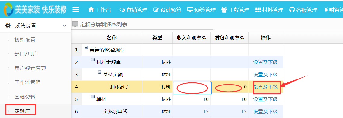 咱們可直接通過系統完成一系列的操作,無須浪費時間通知每位設計師價格的變動信息。最新上線的定額分類利潤操作是怎么一回事呢?使用美佳ERP,在系統設置中就可直接采用定額分類利潤率來批量設置材料的利潤。這樣咱們設計師在做預算的時候可直接按定額新設置的價格給客戶報價,統一管理不亂套。