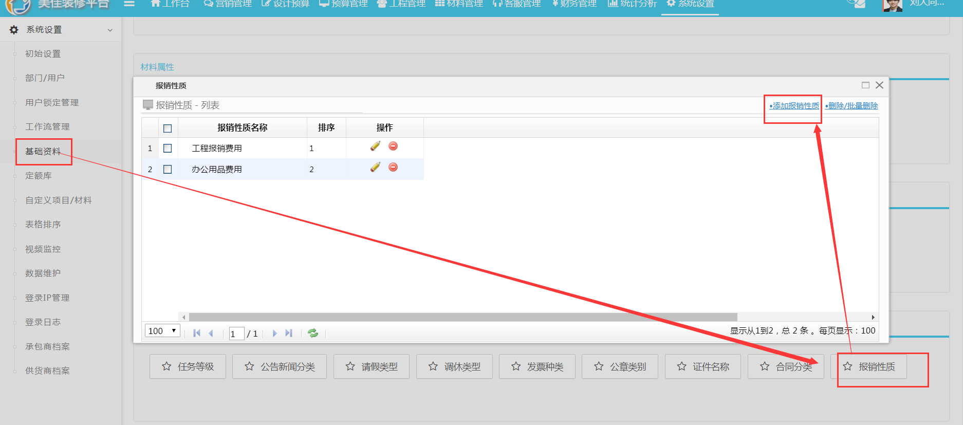 第二步:在基礎(chǔ)資料中完善報銷性質(zhì)